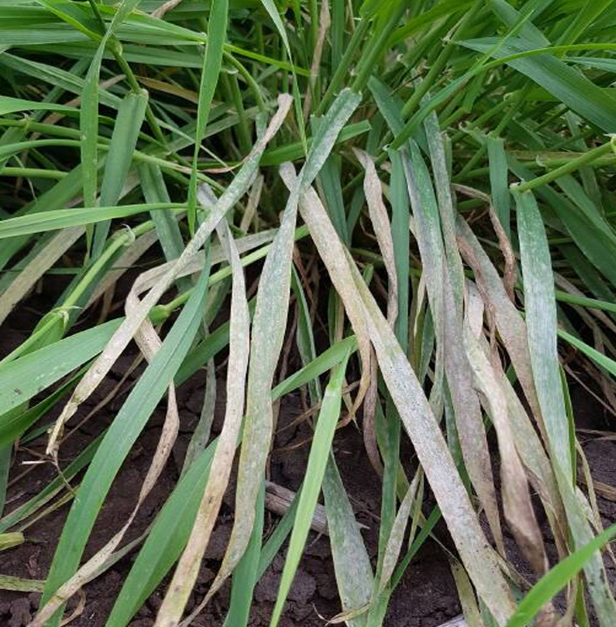 Symptoms: Similar to barley but with twisted leaves