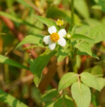 Symptoms: Serrated leaves with small yellow flowers producing barbed seeds that cling to clothing and fur.
