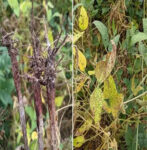 Symptoms: Broad reddish-green leaves with dense flower clusters, rapid vertical growth.