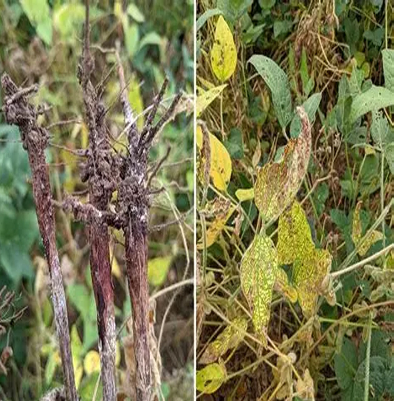 Impact: Parasitic weed that severely reduces yield (up to 100% in heavy infestations) by attaching to soybean roots and extracting nutrients.