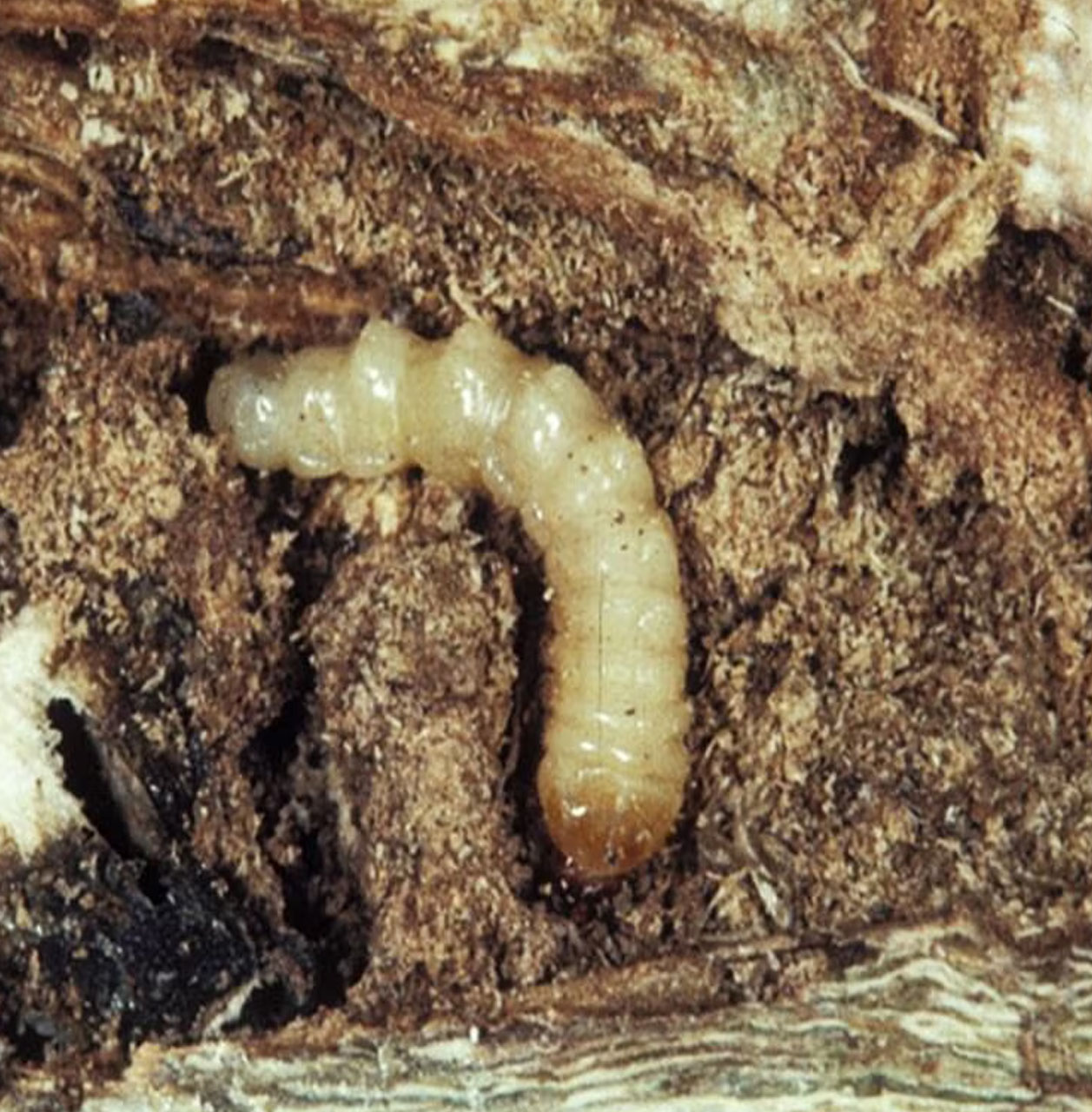 Symptoms: Wilting plants, frass at stem entry holes, and dead growing tips (“dead hearts”).
