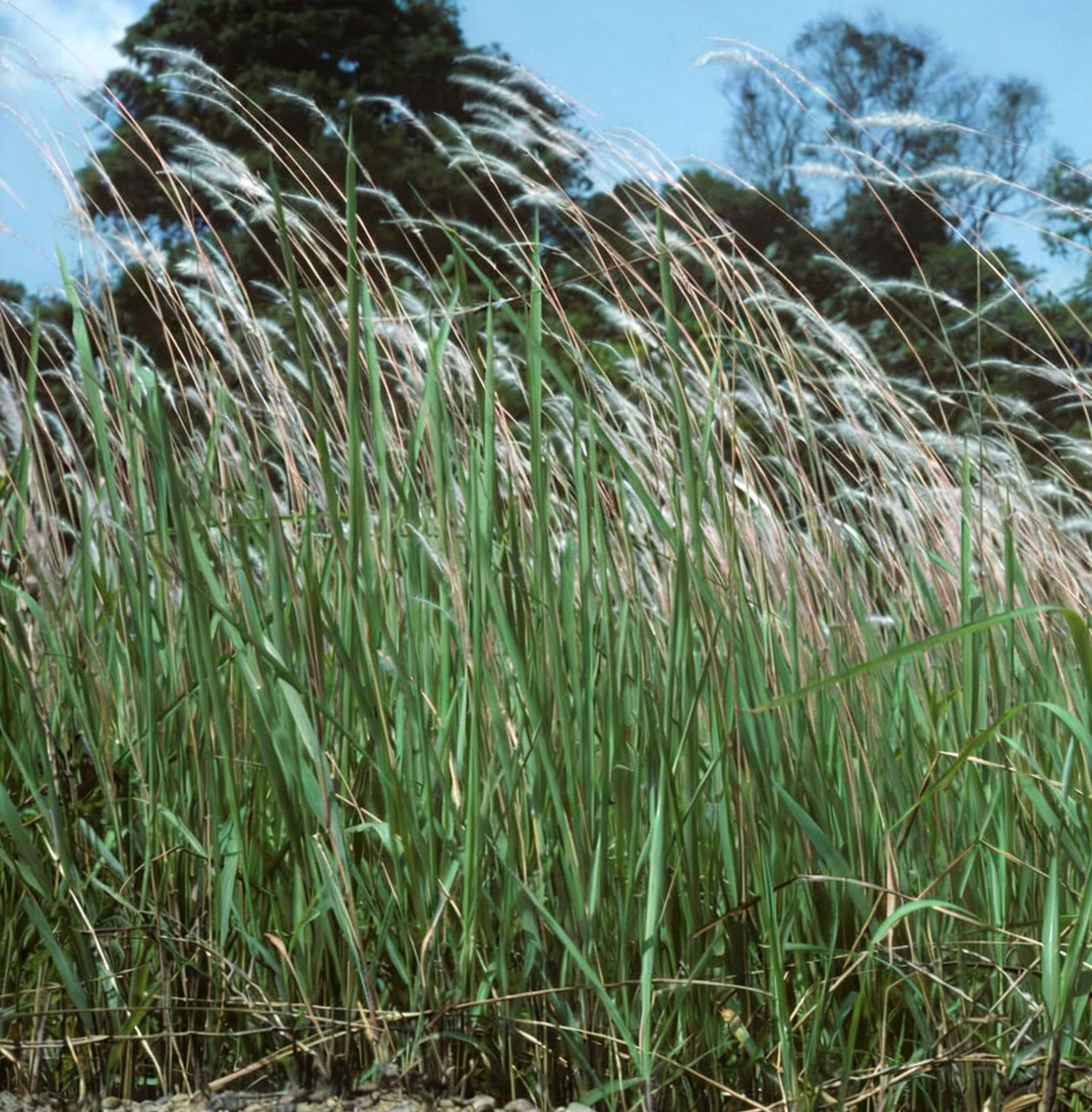 Symptoms: Sharp-tipped rhizomatous grass with white feathery flower heads, rapidly spreading patches.